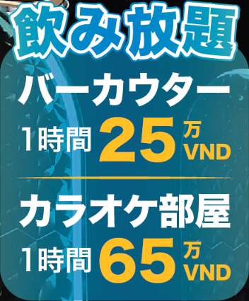 飲み放題:140万VND(60USD)(ウィスキー、焼酎、ビール、ソフトドリンク)