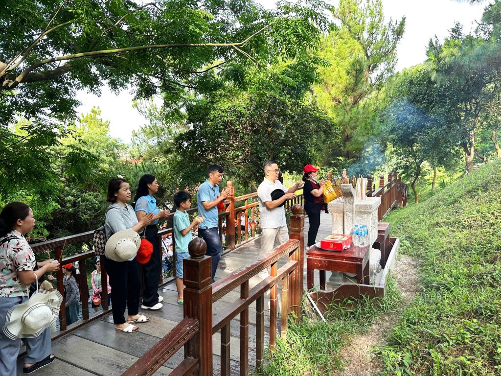 優れた軍事指揮者として知られるヴォ―・グエン・ザップ(Vo Nguyen Giap)将軍の墓の前で静かに手を合わせる