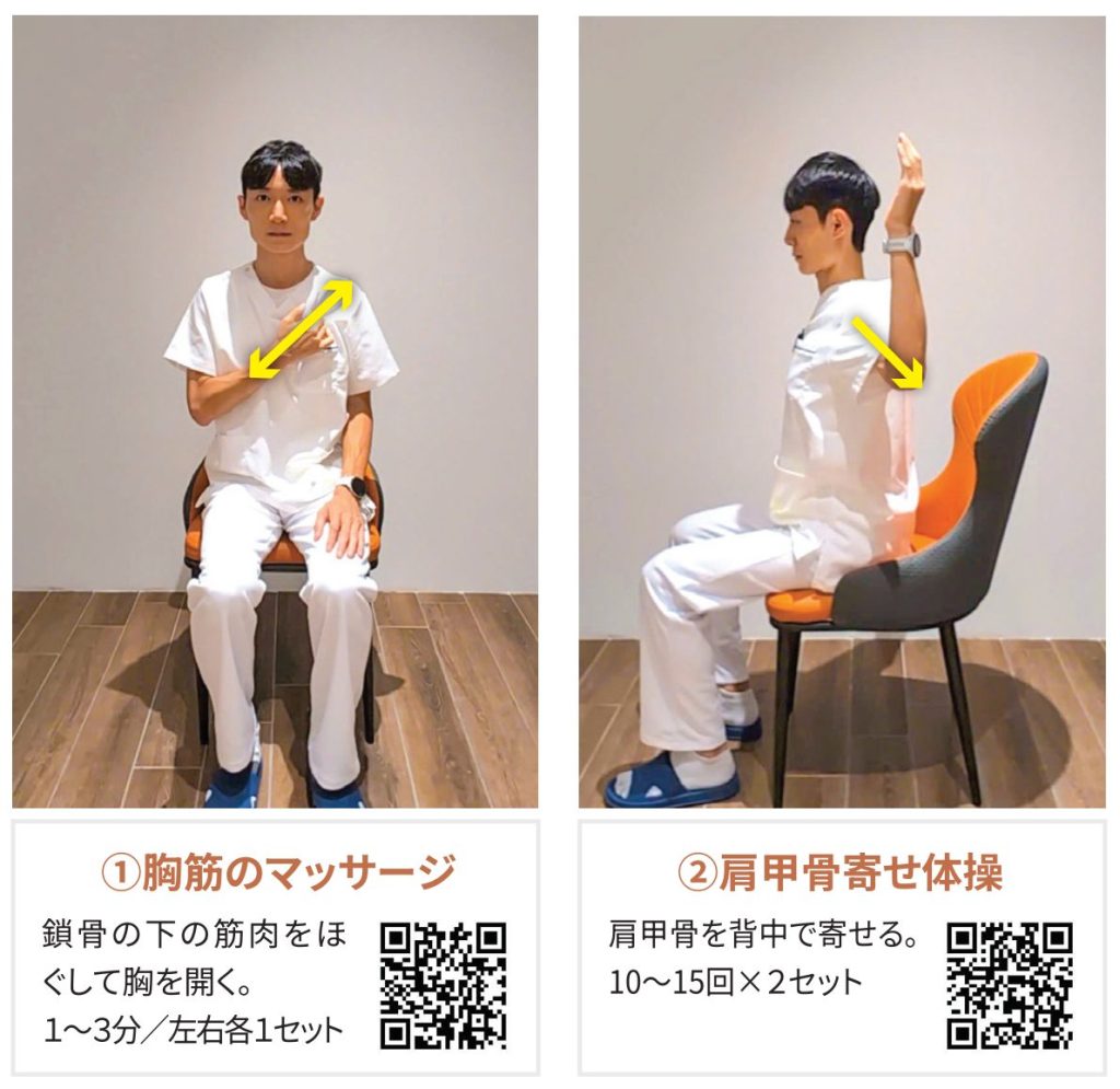 ① 胸筋のマッサージ