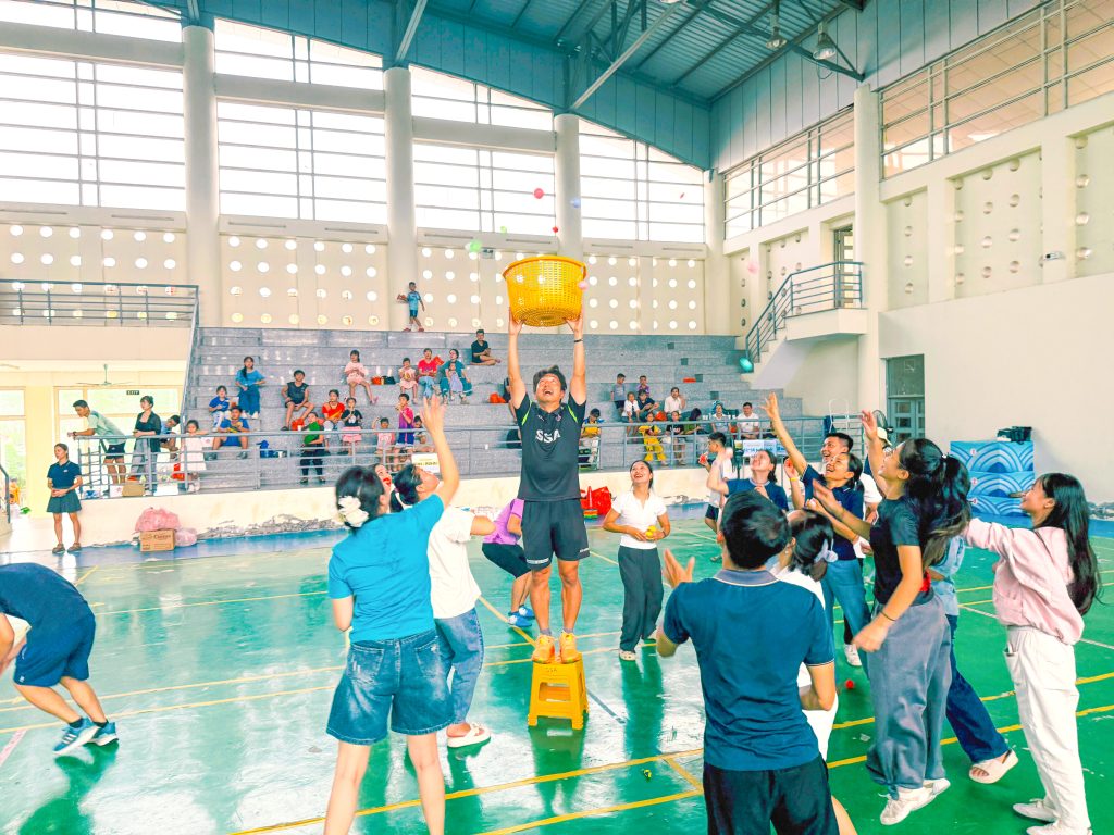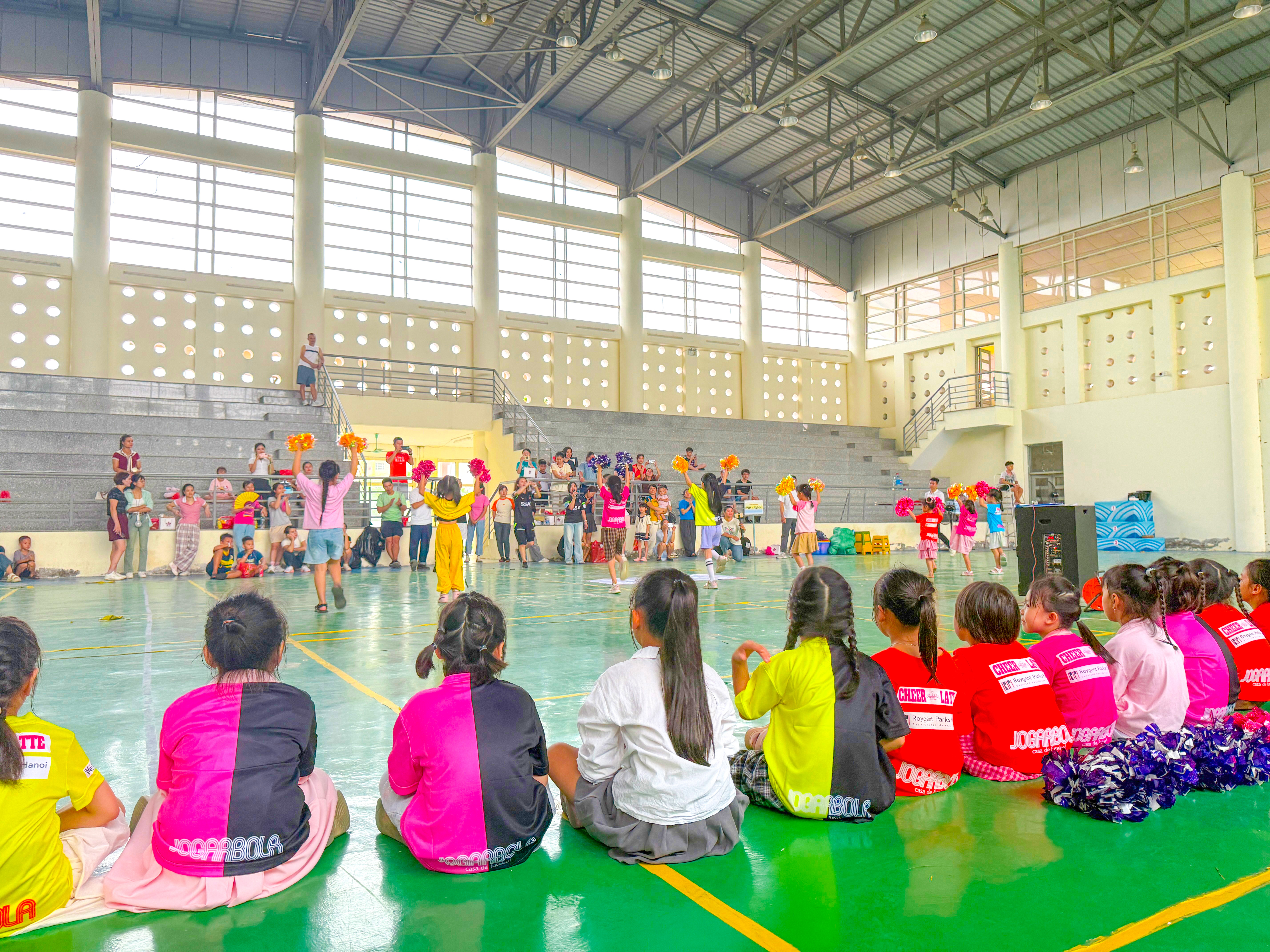 当日は、サッカー大会やチアダンスの披露など、多彩なプログラムが用意されました。サッカーは年齢ごとに分かれ、準備運動からミニゲームまで熱戦が繰り広げられました。チアダンスは、この日に向けて一生懸命練習してきた小さな女の子たちによる華やかな発表で会場を沸かせました。その他、日本の学校の運動会では馴染みのある玉入れやリレーが大人向けのプログラムとして用意され、ベトナム人にとっては初めての体験となり、童心に帰ったような笑顔に溢れていました。