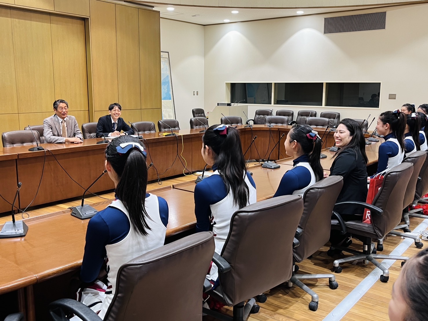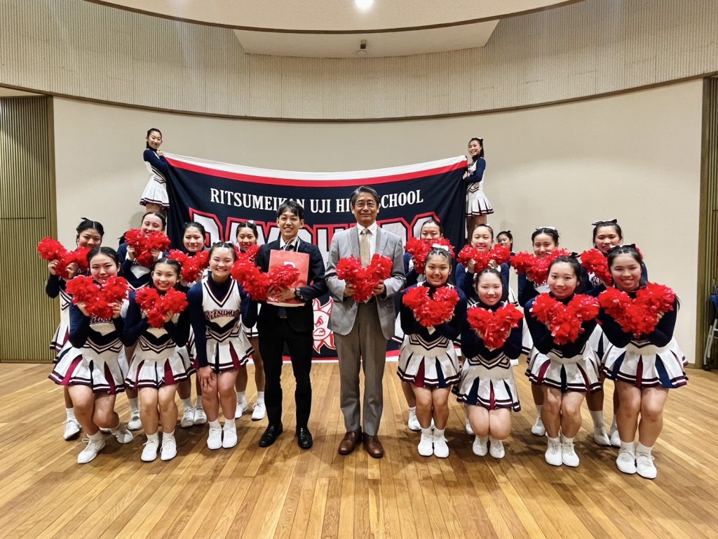 立命館宇治高等学校のチアリーディングチーム「RAYCHERS(レイチャーズ)」のメンバー23人およびコーチ2人と、ハノイで各種スポーツ教室を展開する「さくらスポーツアカデミー/Sakura Sports Academy(SSA)」チアダンススクール代表の小松麻樹さんが2025年8月11日、在ベトナム日本大使館を表敬訪問しました。