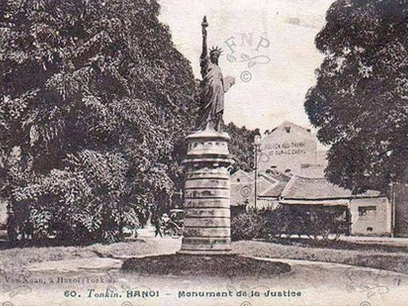 1887年から1945年にかけて、ハノイにも自由の女神がありました。途中、場所は何度か変更されましたが、湖の中心に現在もある「亀の塔」の上に設置されていたものが一番目立っていたようです。ベトナム人の間では、「Tuong Ba Dam Xoe(裾の広がったドレスの西洋夫人像)」と呼ばれていました。高さは約3mほどだったので、アメリカのものと比べると小型なレプリカという感じですが、フランスの植民地時代を象徴する存在でした。自由の女神という名称からは、強烈な皮肉が感じられます。