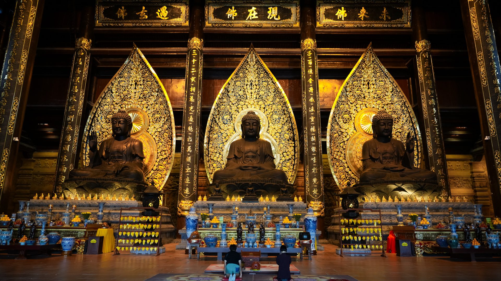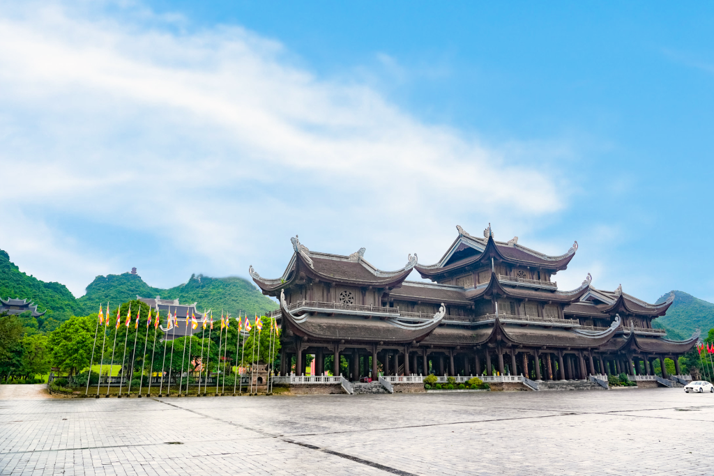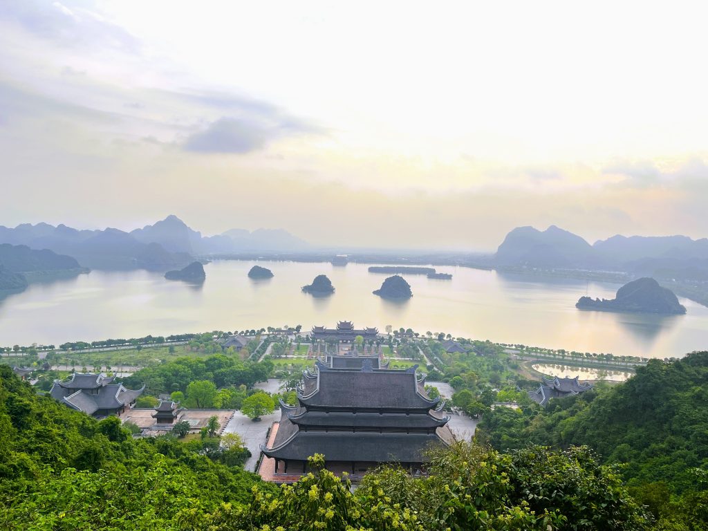 荘厳な伽藍が印象的な大寺院。総面積は約5000haに及び、世界最大級の仏教寺として知られています。穏やかなタムチュック(Tam Chuc)湖と奇岩が連なる山々に囲まれた風景は、まるで水墨画のような幻想的な美しさです。