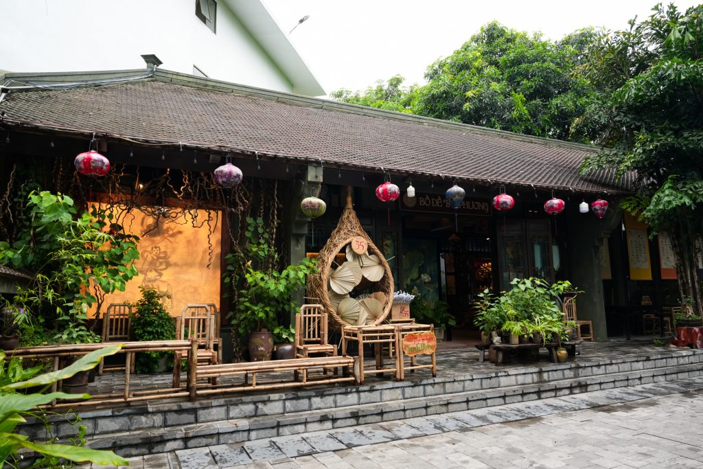 伝統美と現代的な賑わいが融合した、近年注目されているナイトスポット。石畳の通りに並ぶ提灯が夕暮れを彩り、訪れる人々をまるで時代劇の世界へと誘います。昼は書道や陶芸、民族衣装の試着体験など、五感を刺激するアクティビティが充実。夜になると、屋台に灯りが付き、炭火の香ばしい香りとともに、地元料理がずらりと並びます。ヤギ肉料理、コムチャイ(Com Chay)、チェー(Che)など、ここでしか味わえない郷土グルメを片手に、民族芸能「チェオ(Cheo)」のステージや水上人形劇を楽しむのが定番です。