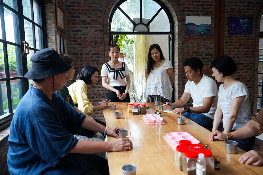 ザーヴィエン(Gia Vien)村内にあり、薬草を使った手作り石鹸の体験が楽しめます。まずはハーブ畑を訪れ、シナモンやターメリック、緑茶などの薬草が丁寧に育てられている様子を間近で見学するところから始まります。その後、専門スタッフの指導の下、選び抜かれた天然素材を使って1つのハーブ石鹸を手作りしていきます。使用される材料はすべて地元産で、化学添加物や人工香料は一切使われておらず、肌に優しいだけでなく環境への配慮も行き届いたものになっています。