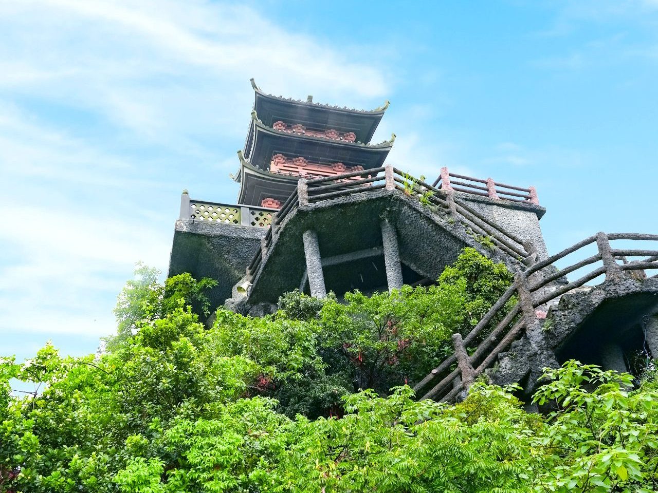 境内には、タムテー(Tam The)殿、ファップチュウ(Phap Chu)殿、そして山頂に建つ印象的なゴック(Ngoc)寺など、荘厳な建築が並びます。中でもゴック寺は、標高200mを超える山の頂にあり、石の階段を300段以上登ってようやくたどり着きます。ベトナム産の貴重な花崗岩で造られており、重厚感と繊細さを合わせ持ち、周囲の自然に見事に溶け込んでいます。