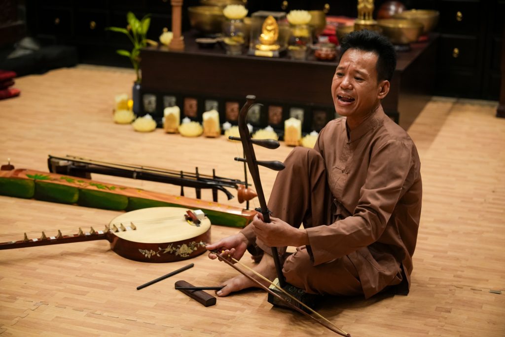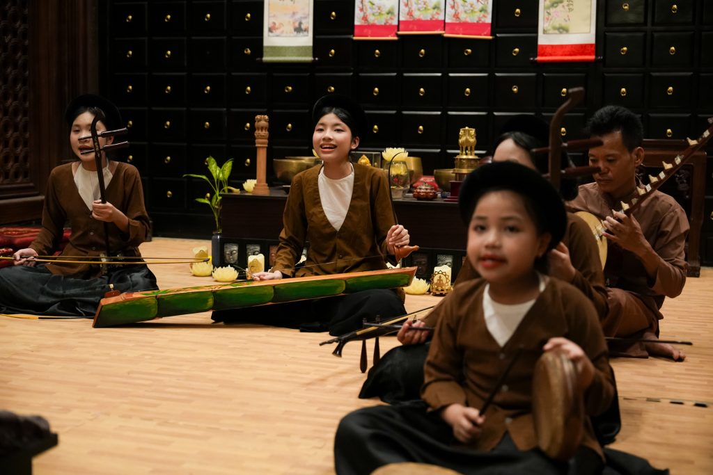 と精神を象徴する貴重な無形遺産として再評価されています。中でもニンビンはその伝統のゆかりの地であり、歌い手ハー・ティ・カウ(Ha Thi Cau)女史を輩出したことでも知られています。人生の喜怒哀楽や風刺、教訓が込められた歌詞と、二胡や木魚の音が織りなす素朴な旋律は、聴く人の心に深く染みわたっていきます。