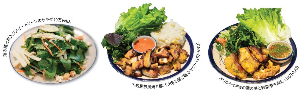 他所ではなかなか体験できない、ニンビンの自然美と調和したウェルネス空間を紹介します。蓮料理をはじめ、心と身体を整えるための工夫が散りばめられているのが特徴です。