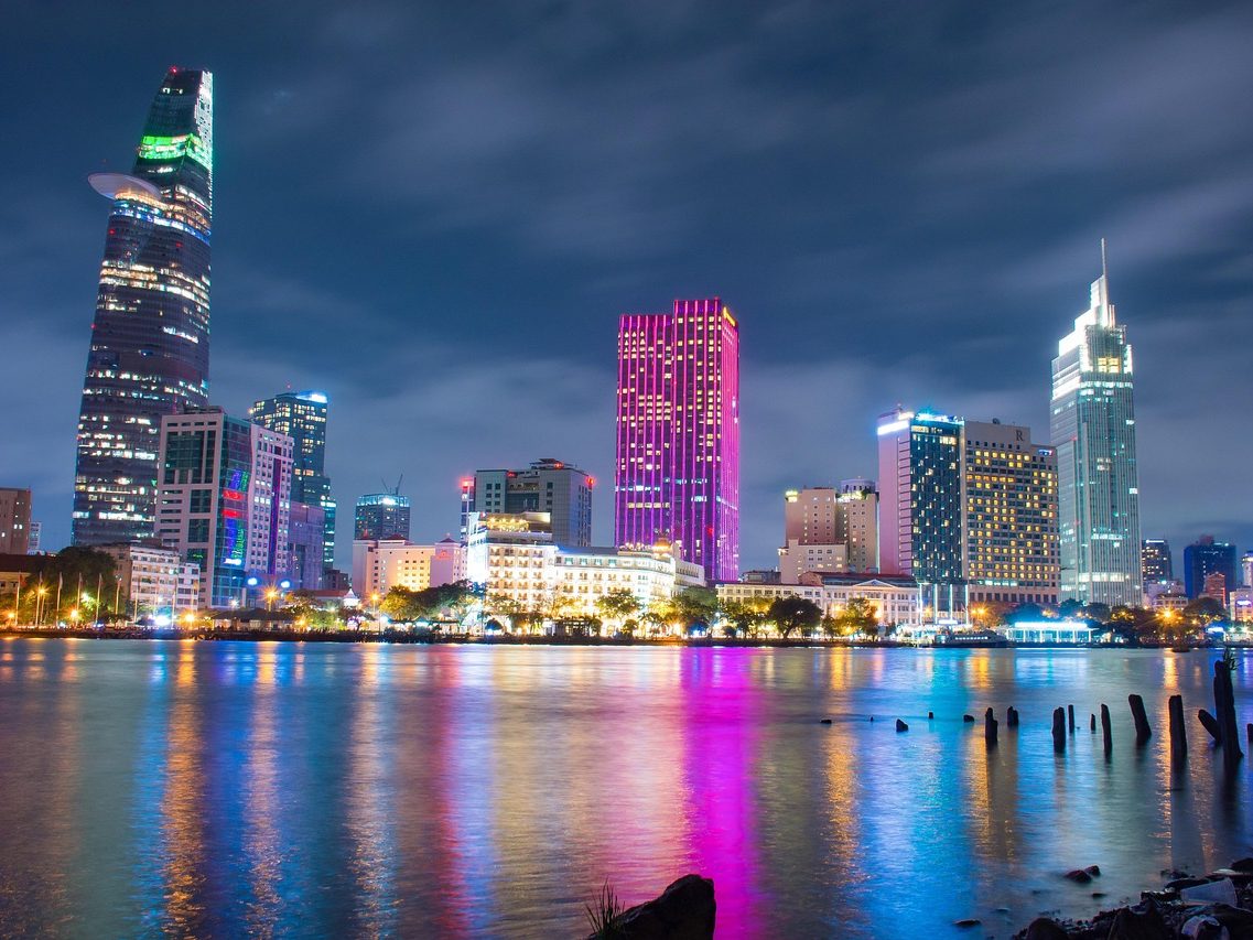 夜が訪れると、高層ビル「ランドマーク81」や「ビテクスコ」、さらに新都市開発が進むトゥーティエム(Thu Thiem)地区の岸辺に灯る明かりが水面に映り、都市の躍動と華やぎを描き出します。かつて蒸気を上げながら出航した船影の残像は、今は穏やかに波間を進むウォーターバスへと姿を変え、独立の夢から持続的発展の希望へと物語が連なっています。