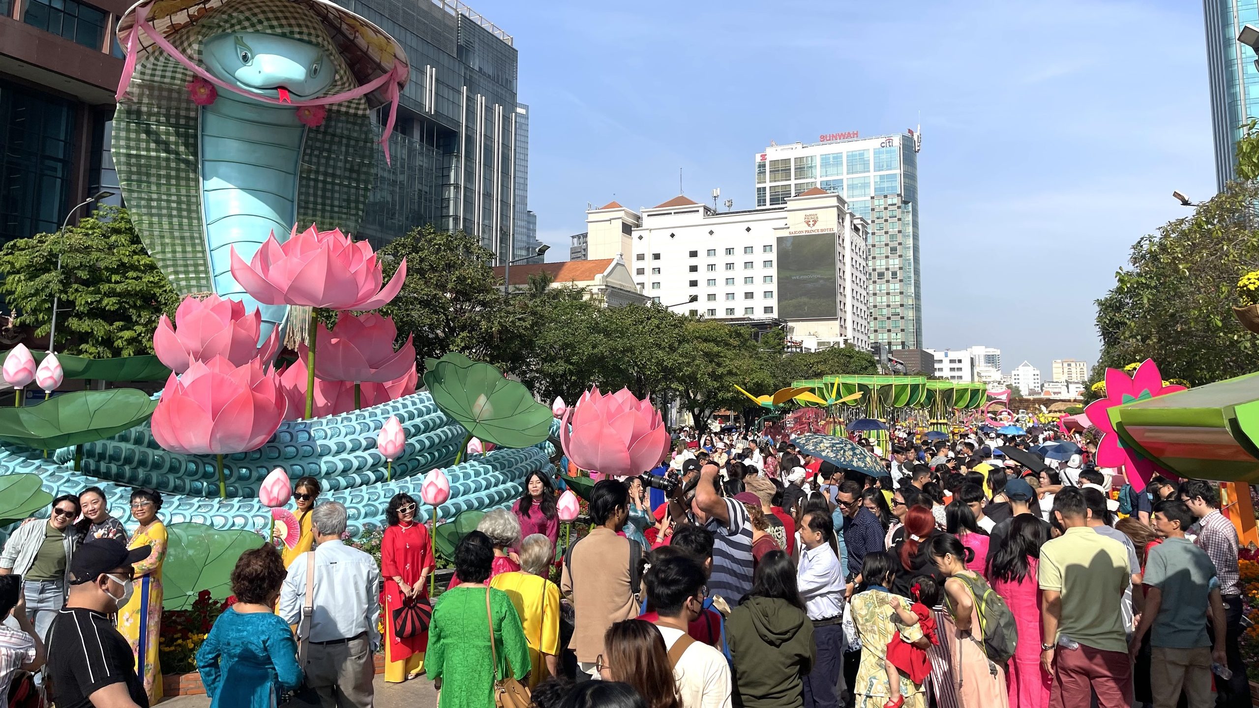 南部の春の外出は、明るく開放的な雰囲気の中で、街のにぎわいを楽しむ過ごし方が特徴です。ホーチミン市では、テトに合わせてヴィンギエム(Vinh Nghiem)寺やジャックラム(Giac Lam)寺を参拝し、健康や商売繁盛を願う人の姿が多く見られます。