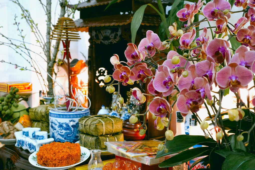 テトは旧暦の大晦日から始まり、元日を含む最初の三日間が特に重要とされています。大晦日には一年の締めくくりとして先祖を迎え、元日から三日目までは、新しい年の始まりを静かに見守ります。