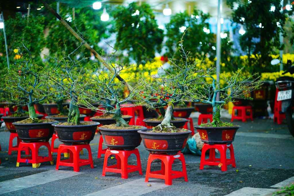 南部のテトを代表する花は、黄色い梅の花です。黄色は幸福や繁栄を象徴する色とされ、家庭や街中に飾られます。菊やマリーゴールドもよく用いられ、正月ならではの明るく華やかな風景を作り出します。