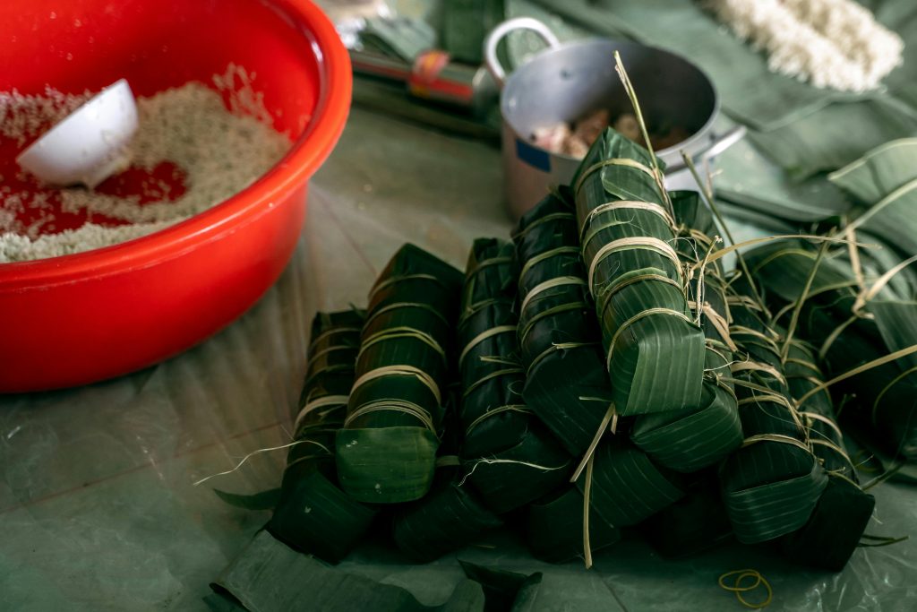 多くの家庭では、バインチュン(Banh Chung)やバインテト(Banh Tet)などの伝統的な餅作りも行われます。家族が集まり、材料を準備し、時間をかけて餅を包んで煮る作業は、絆を深める大切な時間です。