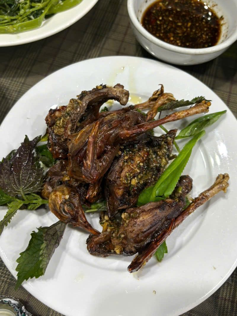 今回の取材でオーダーしたのは、油の香ばしさとクルミのような旨味も感じられる素揚げの「クモ/Nhen」(10万VND)、サクサクとした軽やかな食感とエビせんのような風味が特徴の炒め料理「セミ/Ve Sau」(8万VND)、まろやかでコクがある炒め料理「アリの卵/Trung Kien」(12万VND)、孵化する前のアヒルの卵「ホビロン/Hot Vit Lon」(10万VND)など。同店では、鴨の血を使った「おこわ/Com trang」(10万VND)が特に人気で、もち米の甘みと血のコクをしっかりと堪能できます。