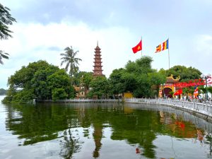チャンクオック寺は、タイ(Tay)湖のほとりにあるハノイ最古の仏教寺院として知られています。赤い仏塔が湖面に映える美しい景観が特徴的で、周りを湖に囲まれた静かな環境の中、長い歴史を通じて人々の信仰を支えてきた場所です。