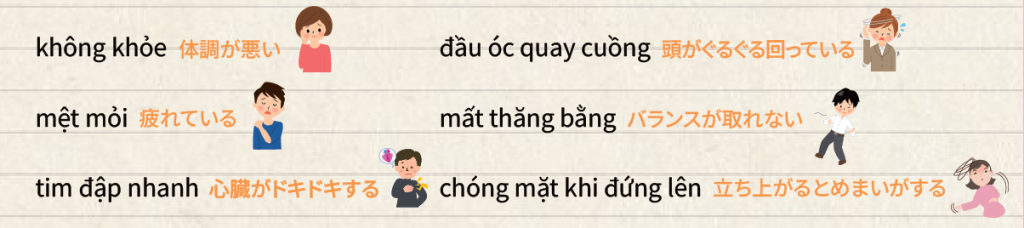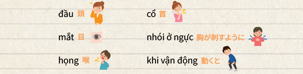 Tôi bị đau ~ が痛いです。