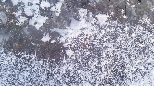 フロストフラワーとは、氷結した湖の上にできる霜のことをさします。真冬の朝にマイナス15度以下でほぼ無風状態、という奇跡的な条件が揃わなければ、この花は育ちません。阿寒湖では他の地域よりも高確率で、フロストフラワーに出会うことができます。風が吹くだけで崩れてしまう儚さが、より一層、美しさを感じさせます。