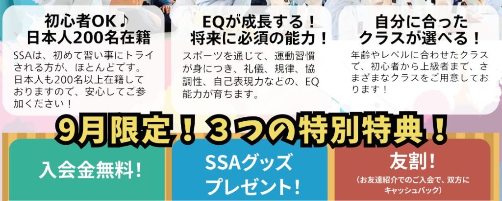 SSAは、お子様の健康な体づくりや人間力を大いに養うことができる教育型スポーツスクールです。
